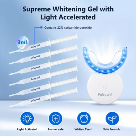 Fairywill Teeth Whitening Kit LED Light Teeth Whitening Light With 6 Carbamide Peroxide Teeth Whitening Gel For Sensitive Teeth As Gift