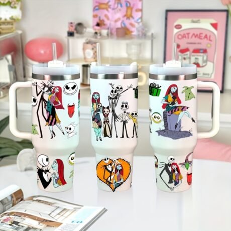 40Oz Disney The Nightmare Before Christmas Insulated Stainless Steel Tumbler – Keeps Drinks Hot or Cold for Hours, BPA-Free, Durable, and Easy to Clean – Perfect Gift for Family and Friends, Fans of Jack Skellington and Sally