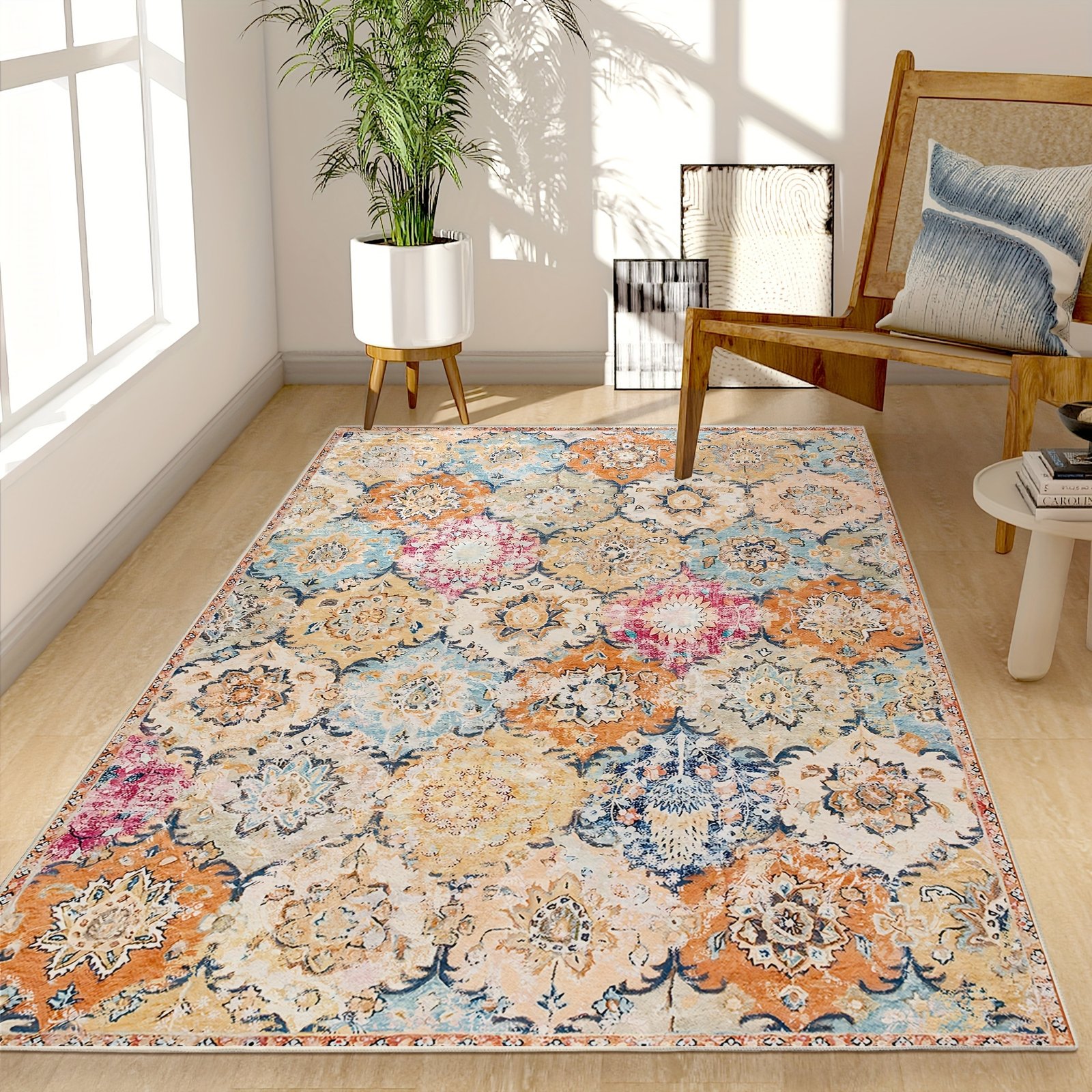 1pc Vintage-inspired Bohemian Chic Area Rug – Abstract Grid Pattern, Non-slip Backing, Suitable for Living Rooms, Bedrooms, Offices, and Doorways – Durable, Soft, and Easy to Clean